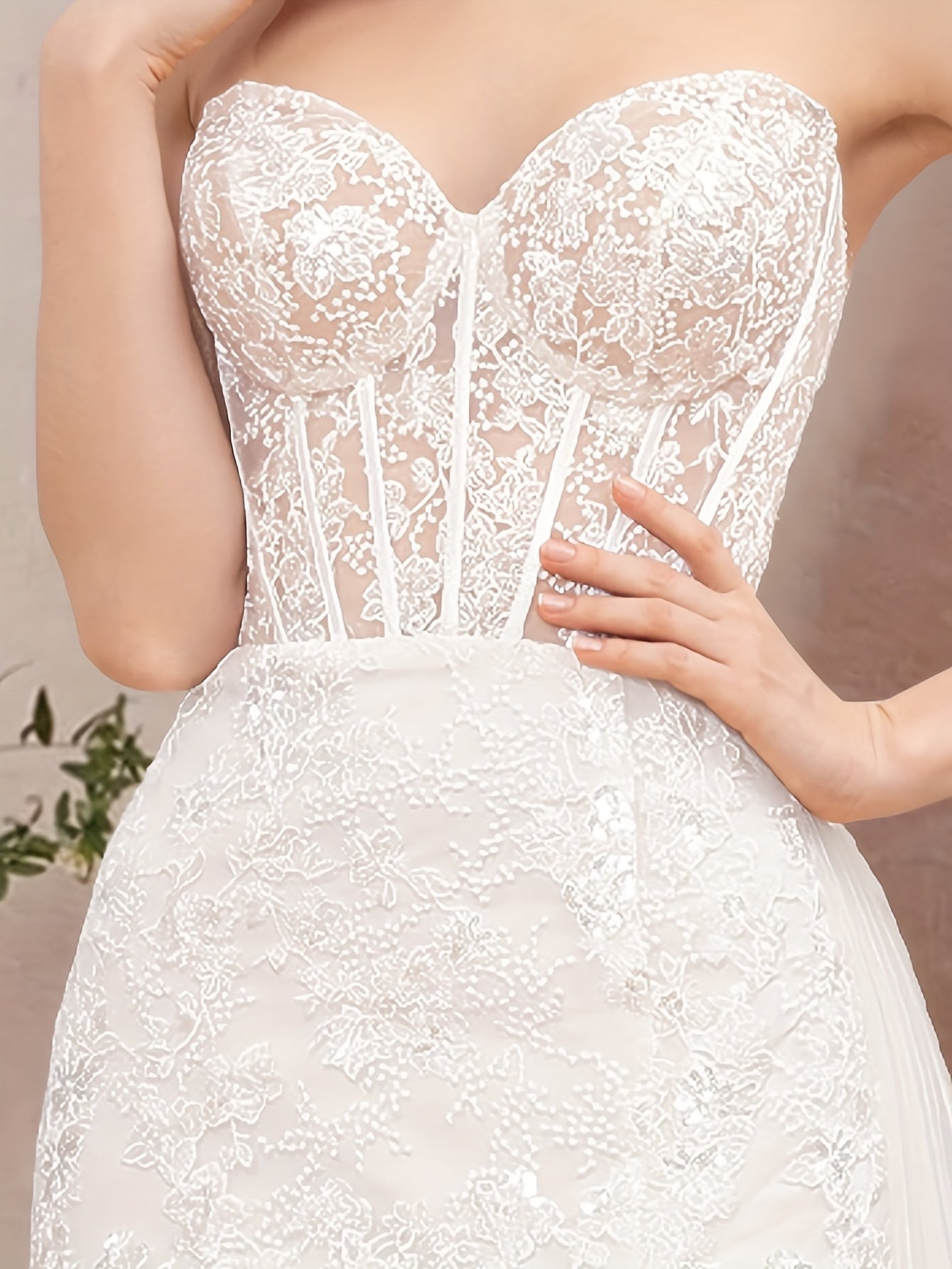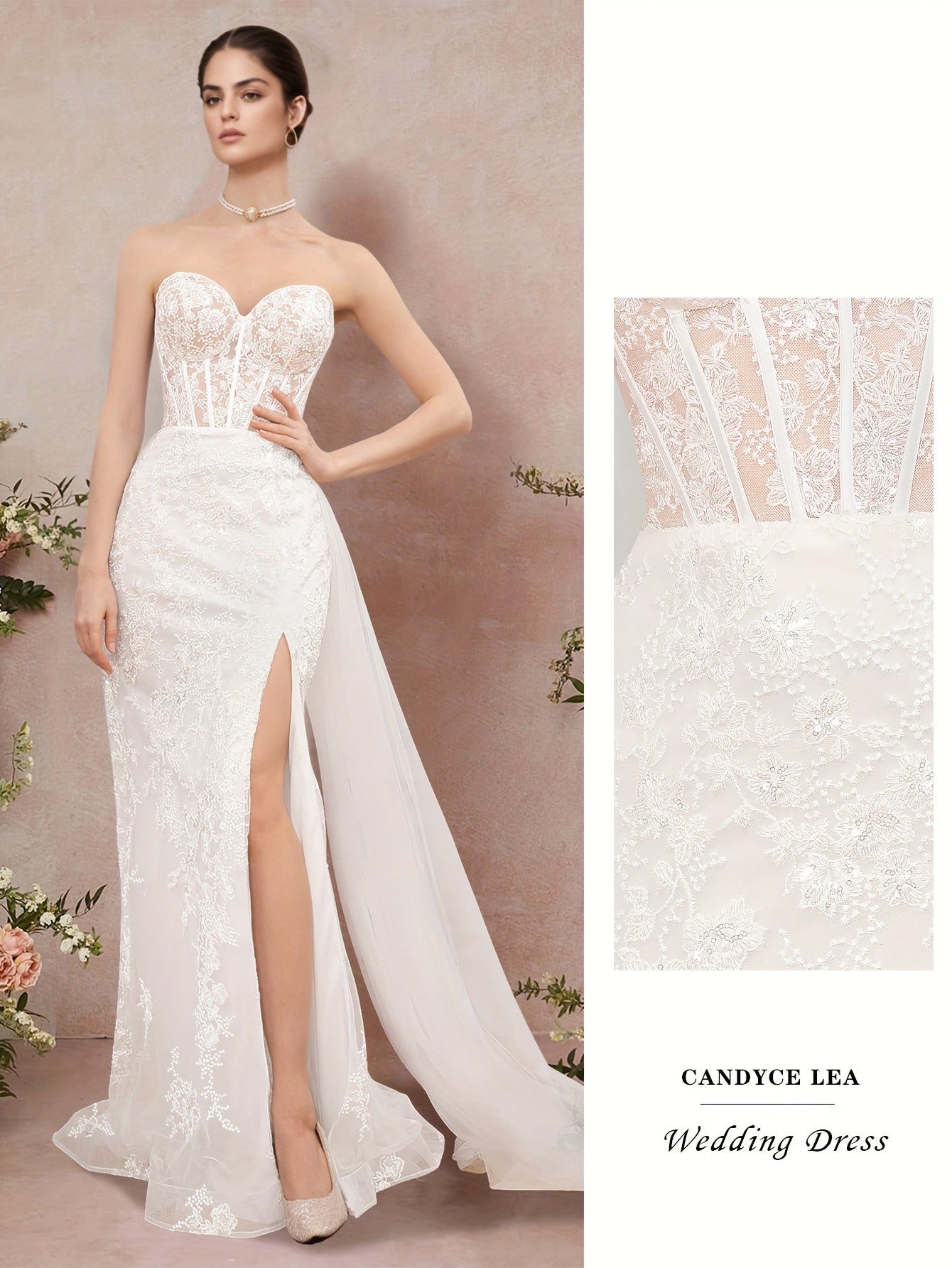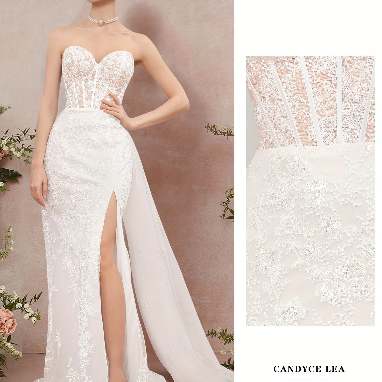 Candyce Lea Heart-Shaped Strapless Sequin Embroidered Wedding Dress with High-Low Hem & Train - Elegant Long Formal Gown for Weddings, Galas, Proms, Wedding Dresses for Bride, Wedding Guest Attire, Sophisticated Craftsmanship