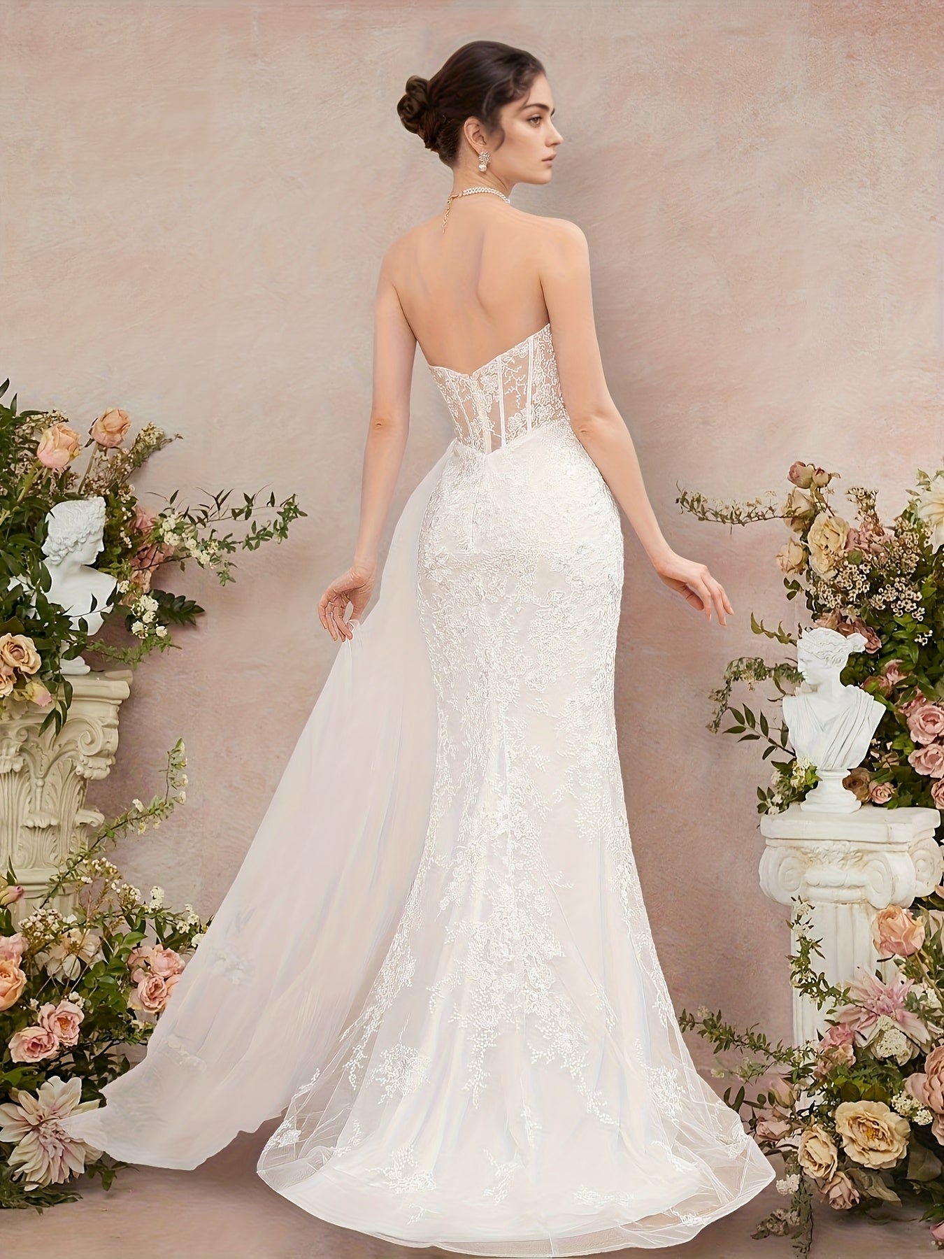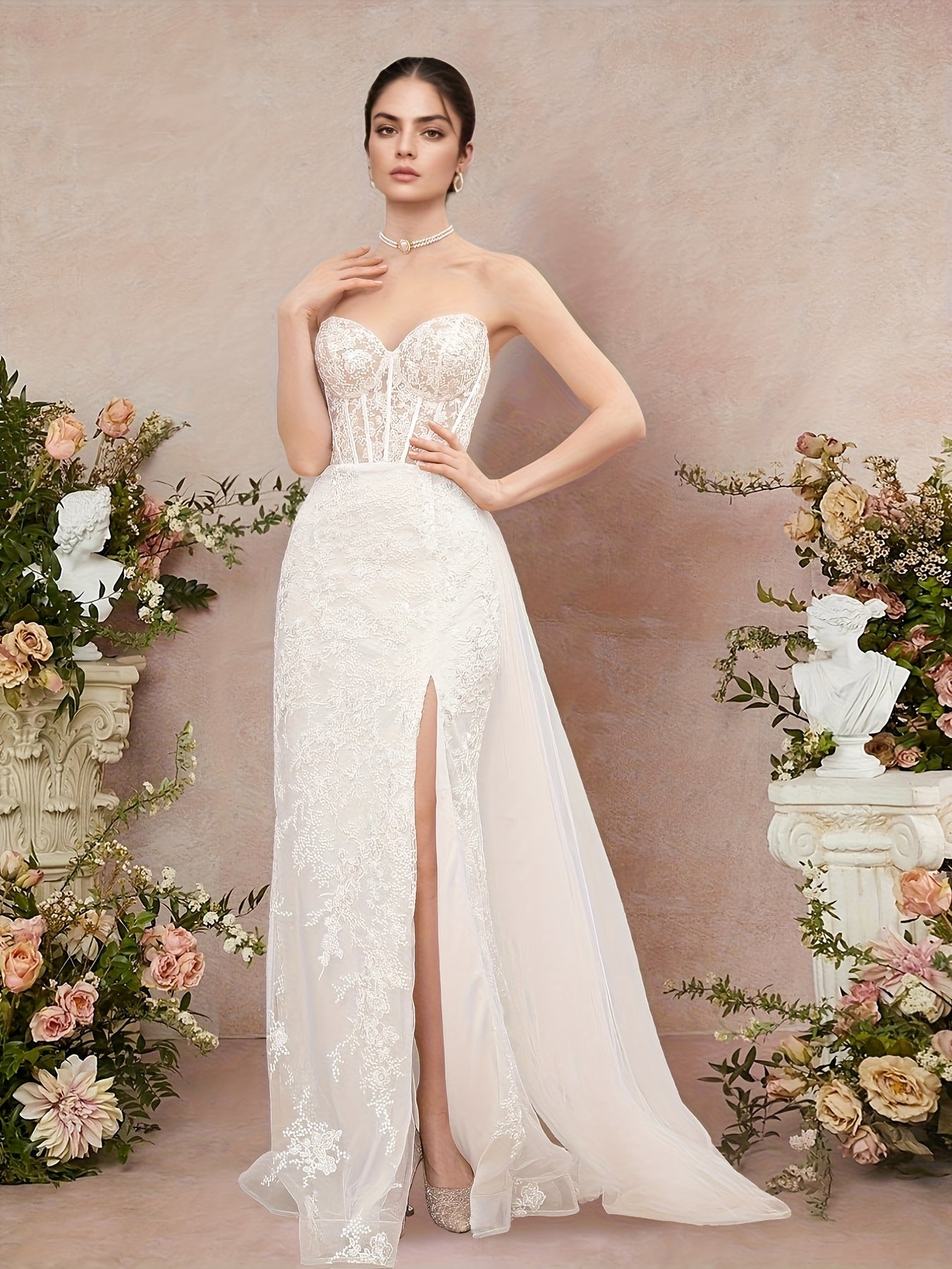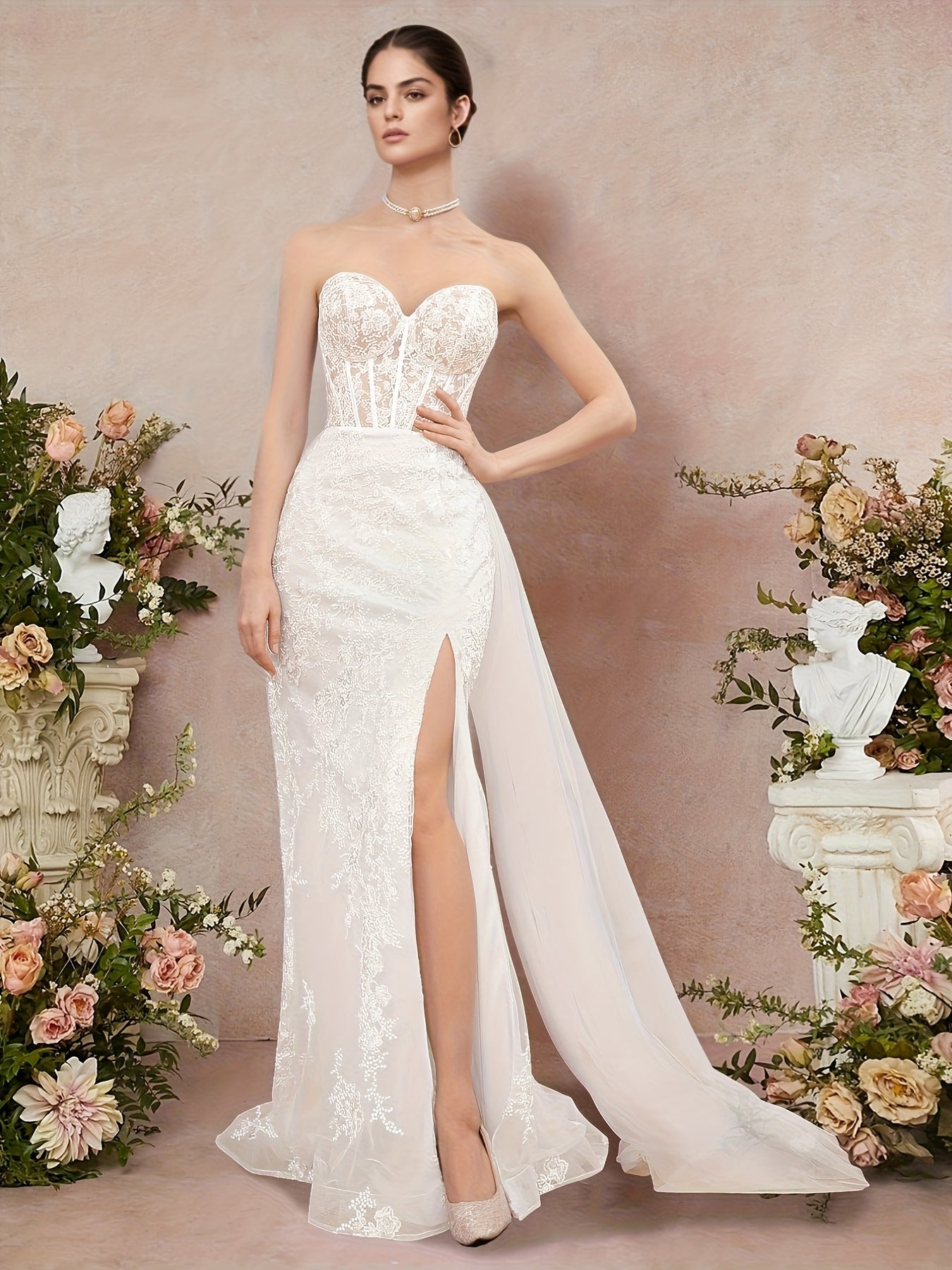 Candyce Lea Heart-Shaped Strapless Sequin Embroidered Wedding Dress with High-Low Hem & Train - Elegant Long Formal Gown for Weddings, Galas, Proms, Wedding Dresses for Bride, Wedding Guest Attire, Sophisticated Craftsmanship