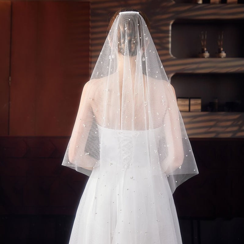 Elegant Bridal Veil for Women - Single-Layer Pearl & Nail Bead Design, Perfect for Weddings, Mother'S Day, Graduation, and Special Occasions, Wedding Dress Accessory | Elegant Bridal Veil | Intricate Beadwork, Wedding Dresses for Bride