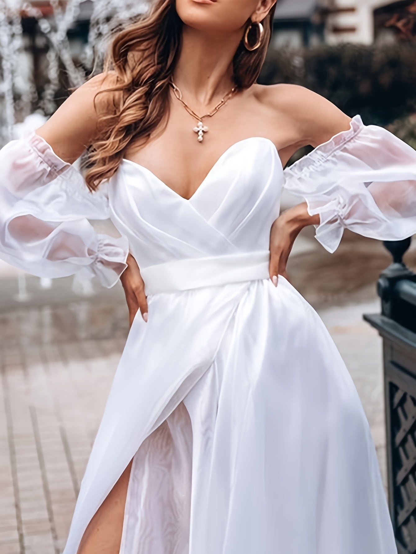 Elegant Evening Gown Elegant Sexy Off-Shoulder Evening Gown for Women | V-Neck, Long Sleeve, Waist Cinching, Flowing Design, Solid Color, Perfect for Formal Events