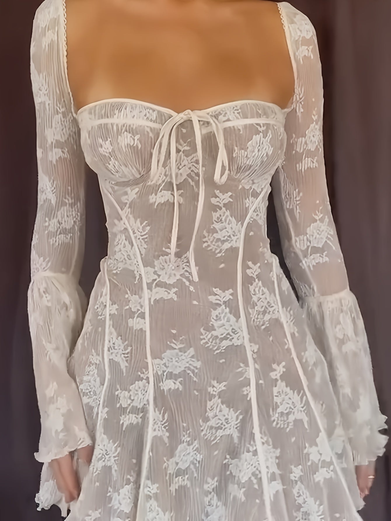 Elegant V-Neck Strapless Long Evening Gown for Women - Slim Fit Formal Prom Dress with Ruffled Sleeves & Lace Detailing, Solid Color Party & Evening Wear, Dresses Elegant Formal