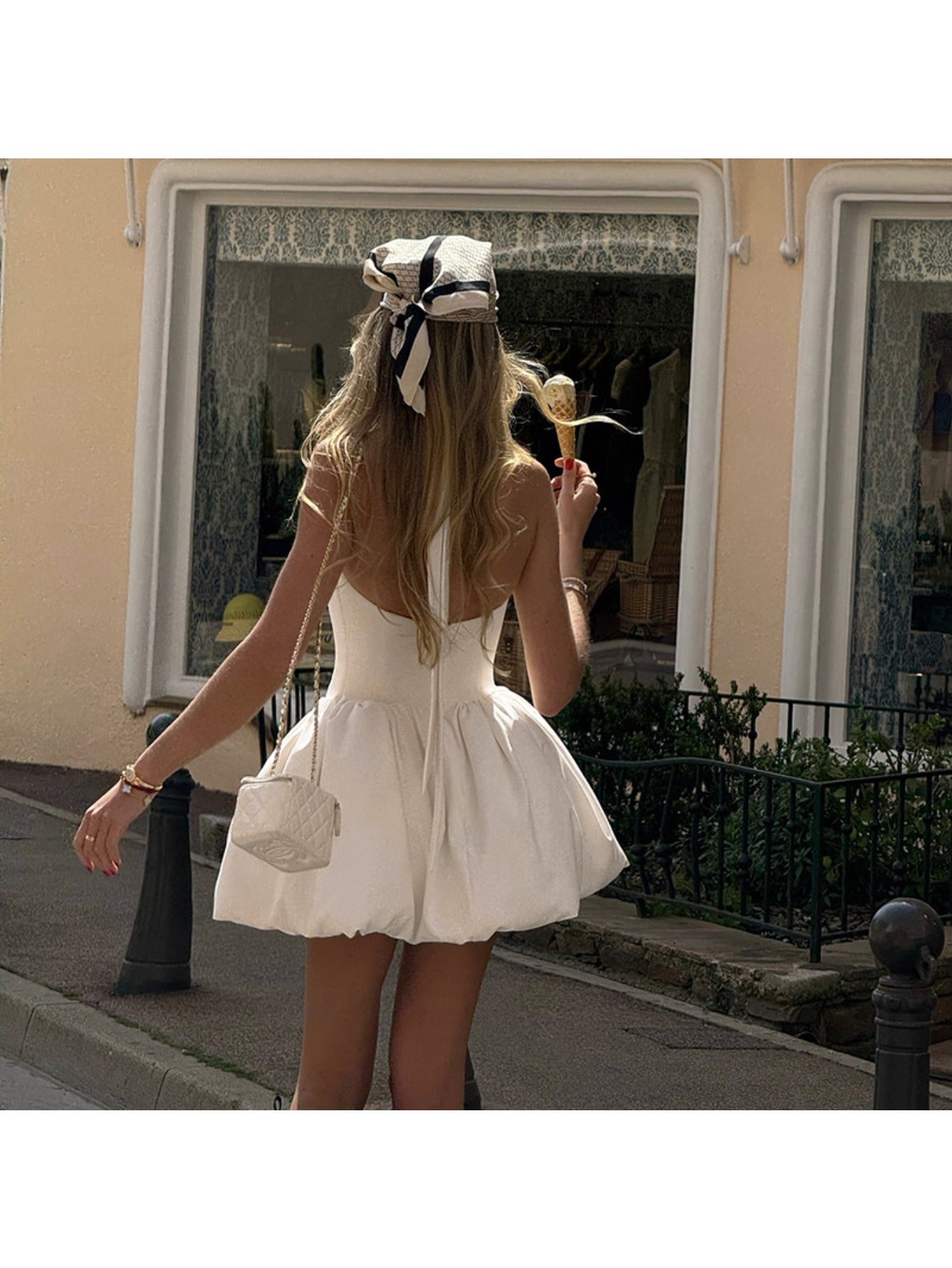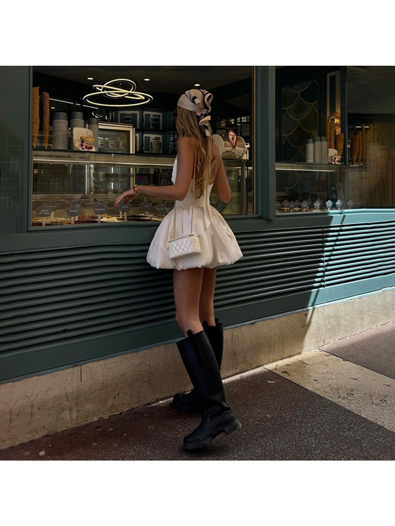 Elegant White Halter Neck Ruffled Mini Dress with Belt - Long Sleeve, Bodycon Fit for Parties, Weddings, Birthdays & Special Occasions, Perfect for All Seasons, Wedding Guest Attire|Ruffled Hemline|Sleek Fitted Top