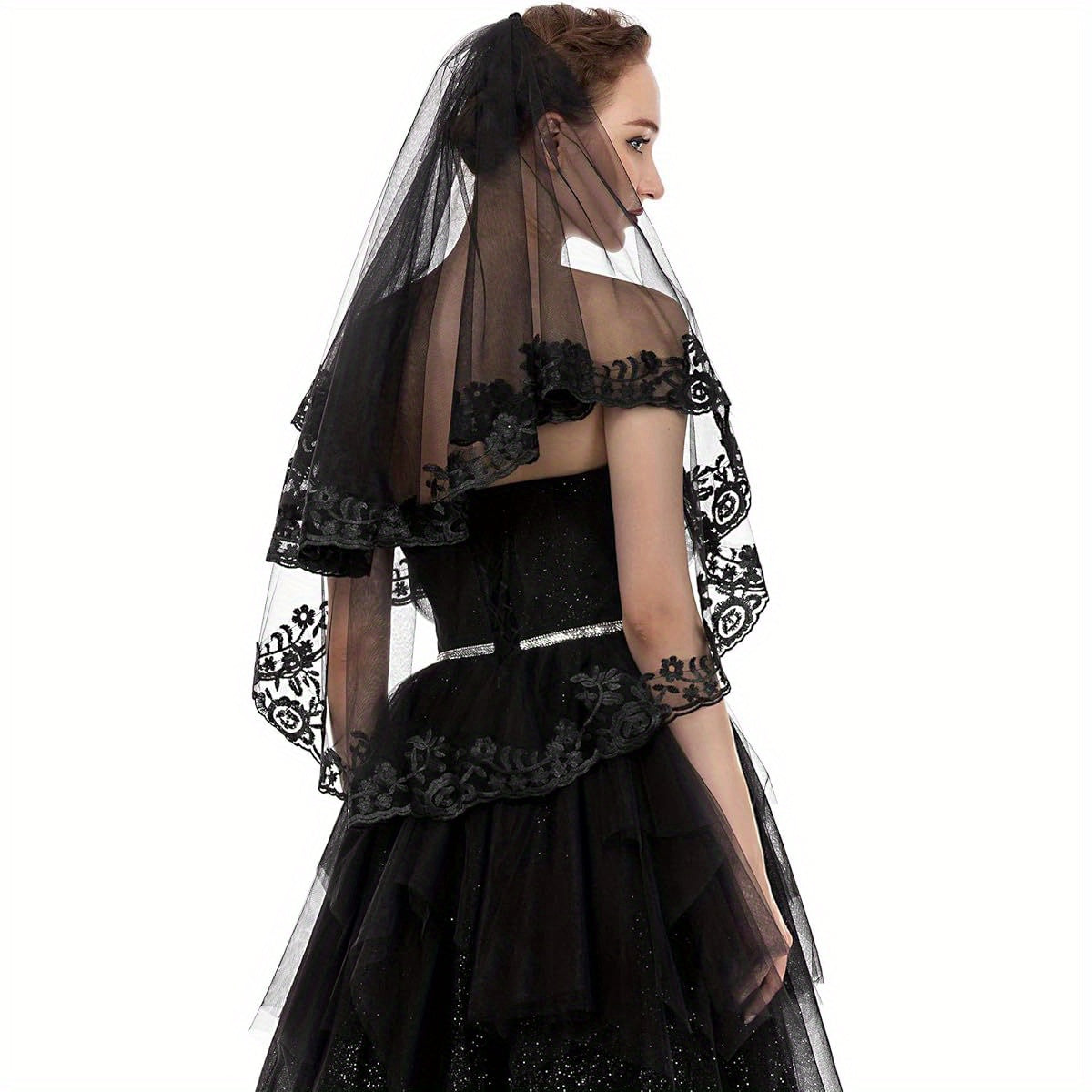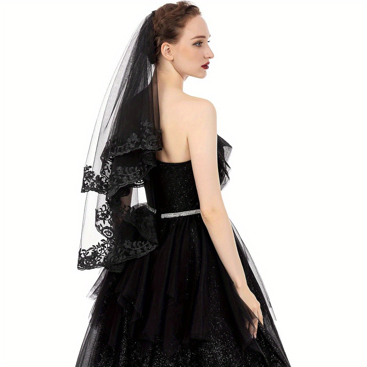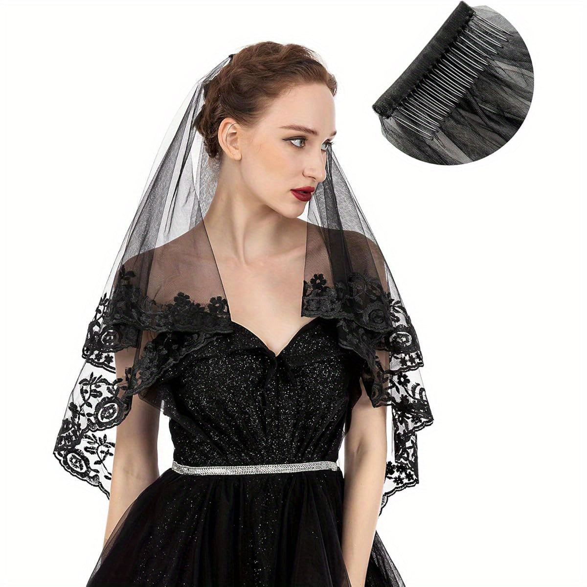 PAMOR Black Lace Cathedral Tulle Veil with Hand- Sewn Metal Comb - Elegant Sheer Bridal Veil for Weddings, Halloween, and Formal Events, Polyester and Spandex Blend, Wedding Veil | Elegant Veil | Intricate Lace Detailing, Wedding Dresses for Bride