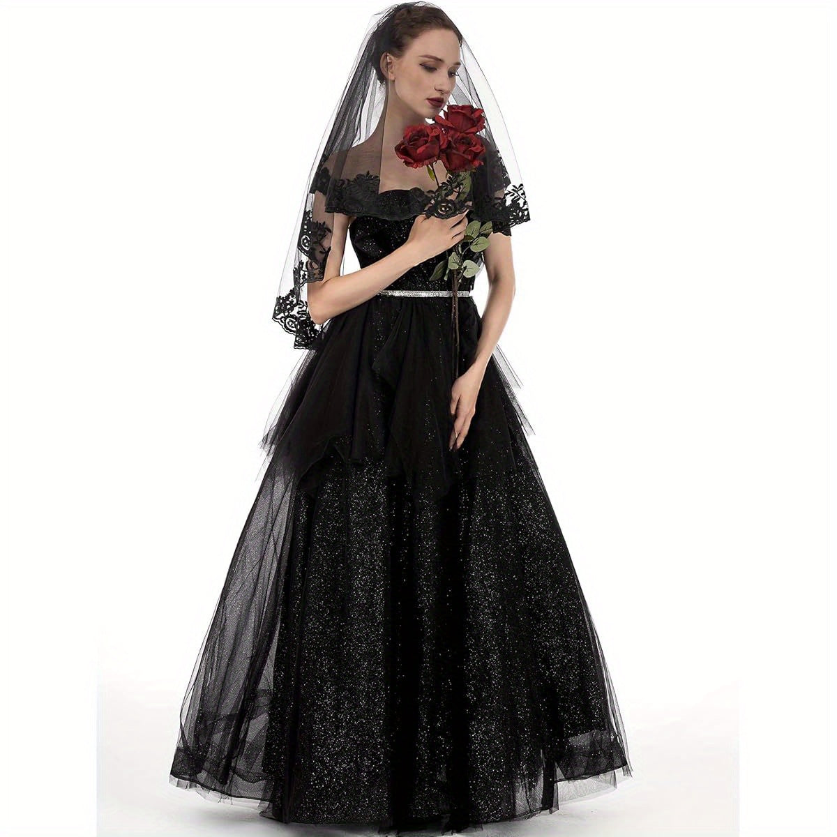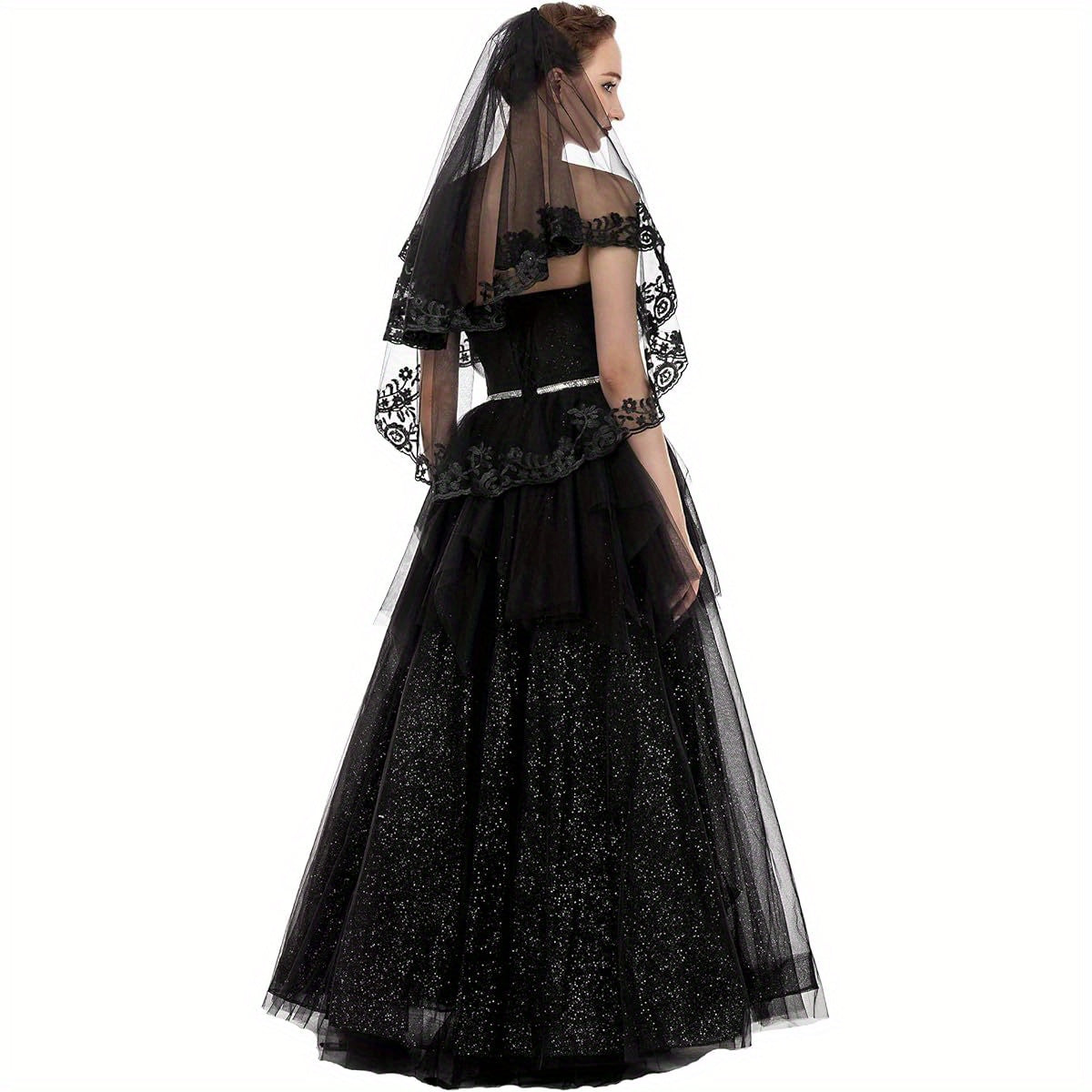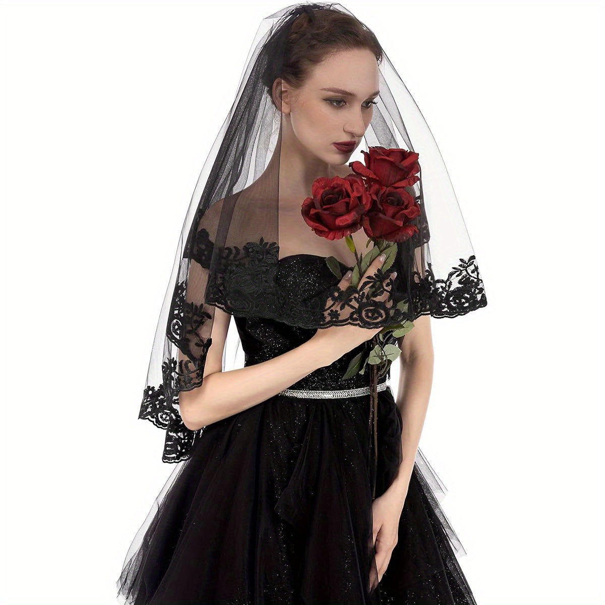 PAMOR Black Lace Cathedral Tulle Veil with Hand- Sewn Metal Comb - Elegant Sheer Bridal Veil for Weddings, Halloween, and Formal Events, Polyester and Spandex Blend, Wedding Veil | Elegant Veil | Intricate Lace Detailing, Wedding Dresses for Bride