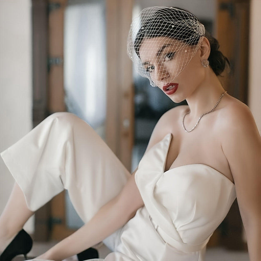 Wedding Season Bridal Hair Accessories, White Mesh Headdress with Comb, Bridal Veil for Evening Dance, Bridal Veil with Wedding Dress, Headdress with Evening Gown, Bestie Birthday Party, Bachelorette Party