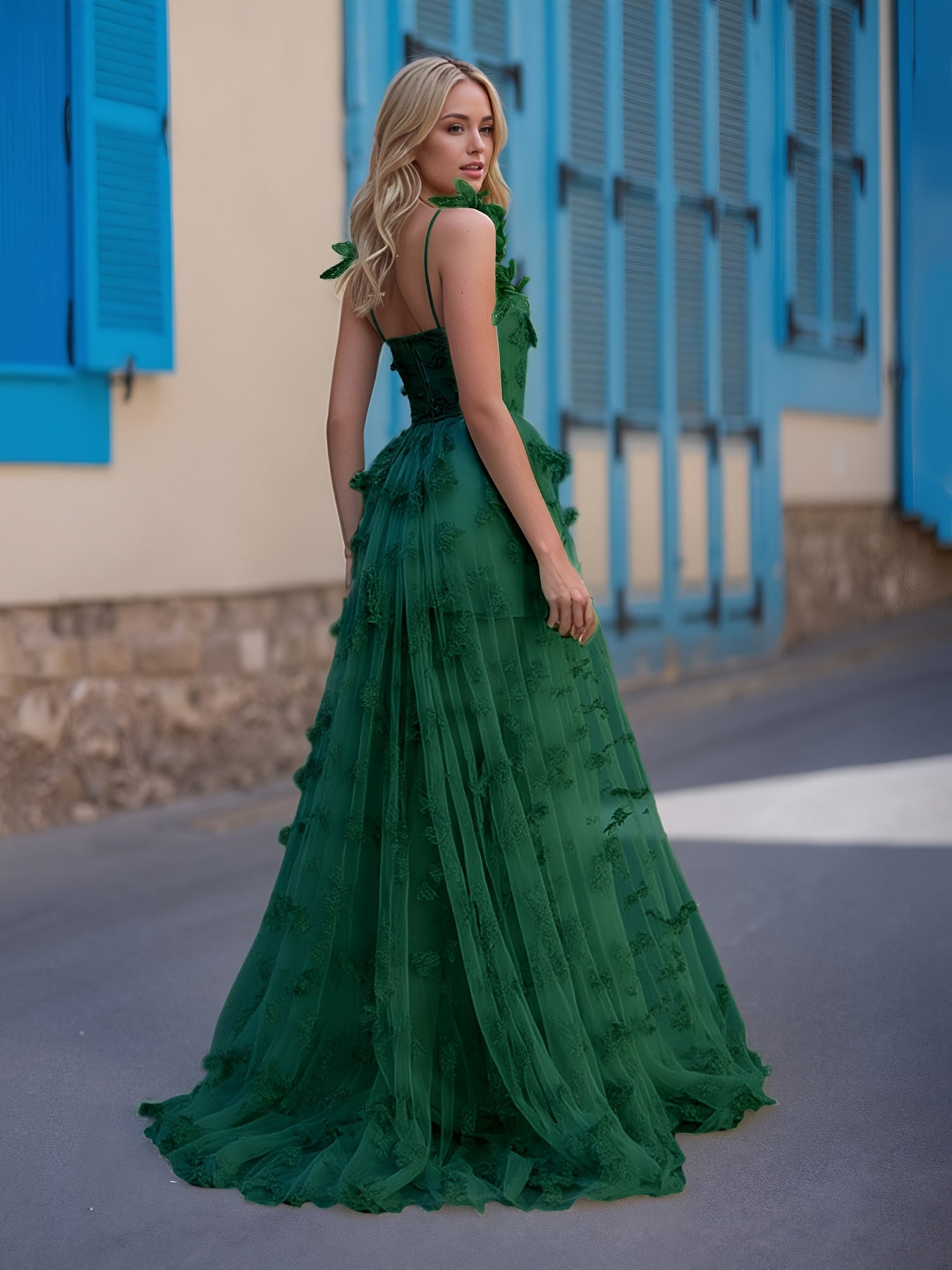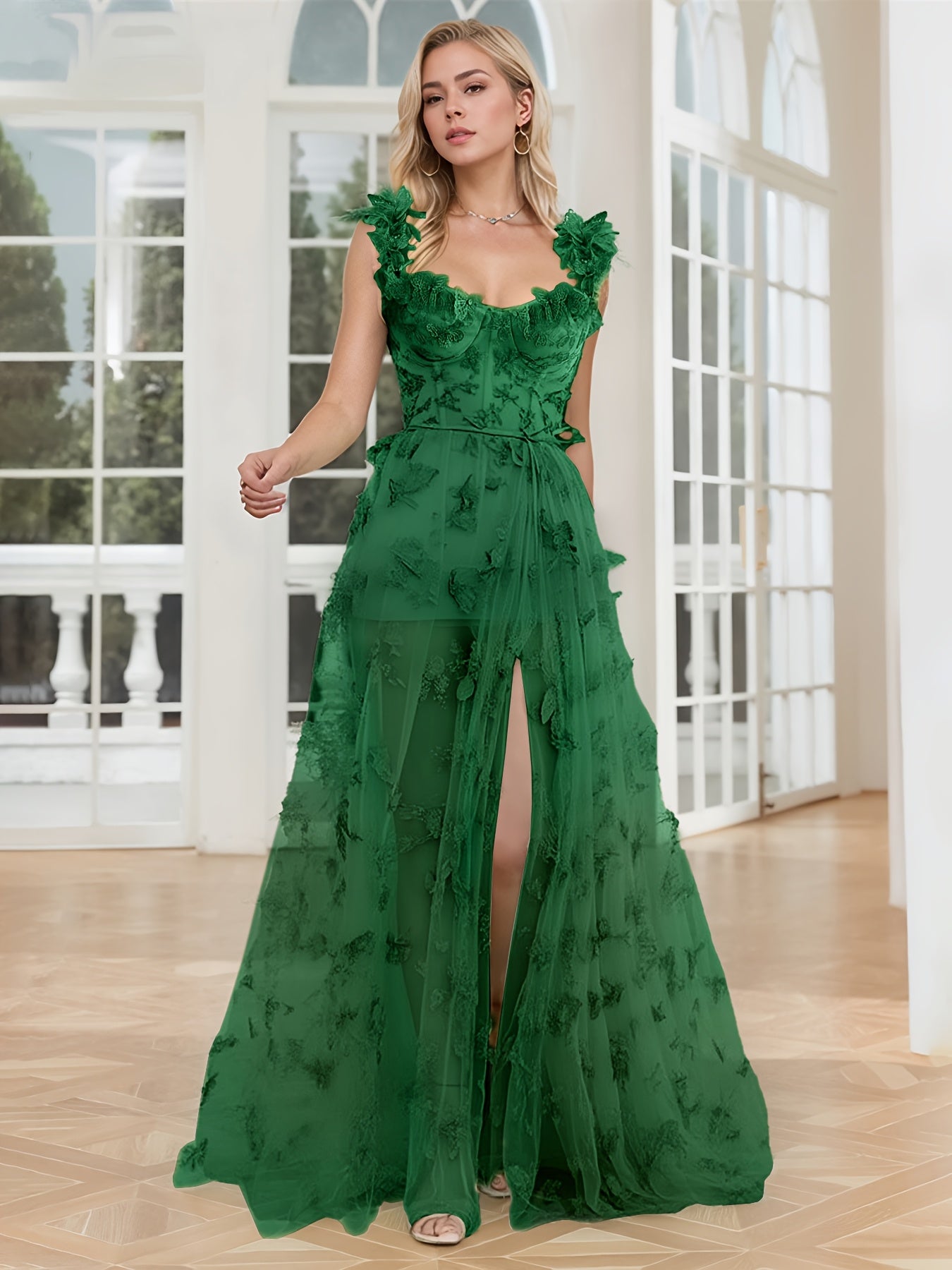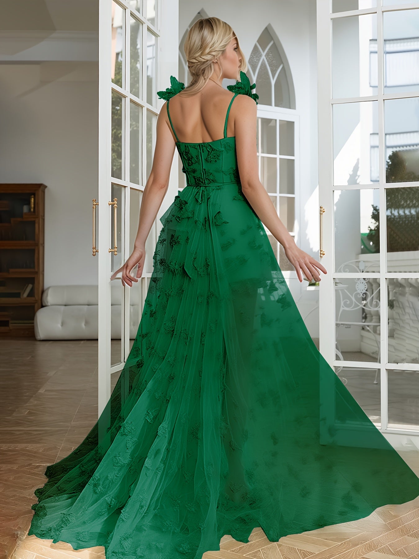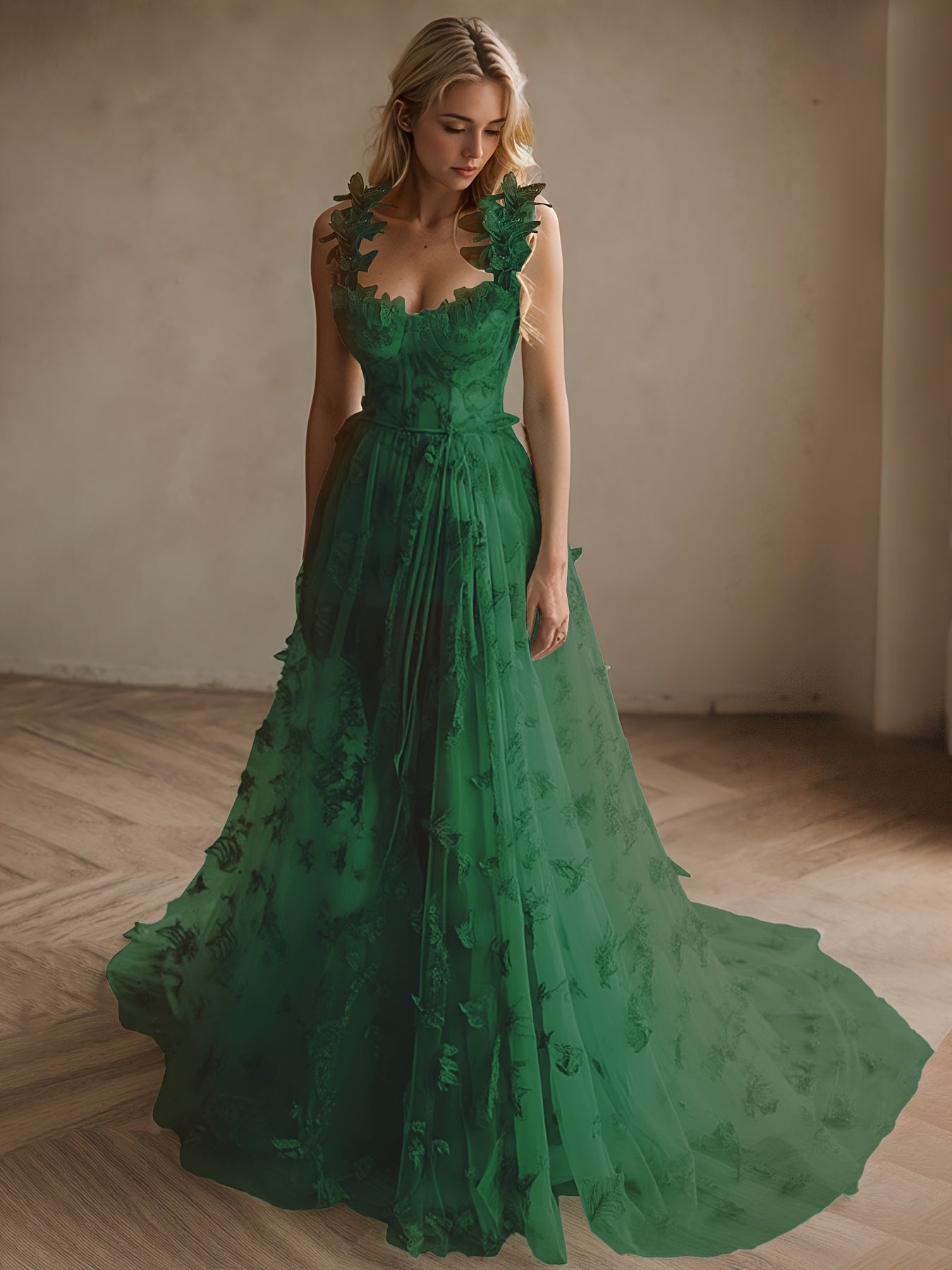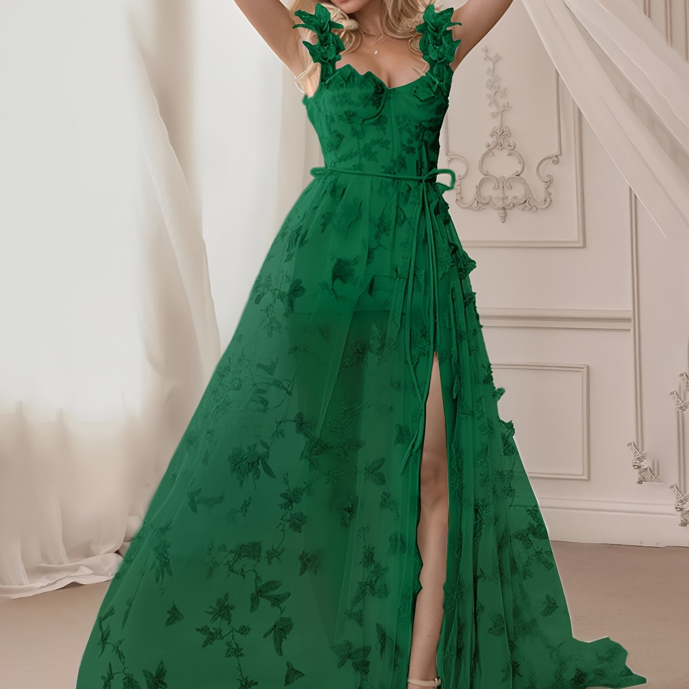 Women'S Elegant Off-Shoulder\u002FOne-Shoulder Lace Trimmed Evening Gown - Floor-Length Formal Wedding Dress with Butterfly Pattern, A-Line Silhouette & Convertible Train, All-Season Wear for Beach Balls, Galas, Prom, Birthdays - Timeless Silhouette in Em